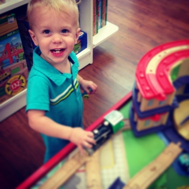 Ryan discovers the train table.