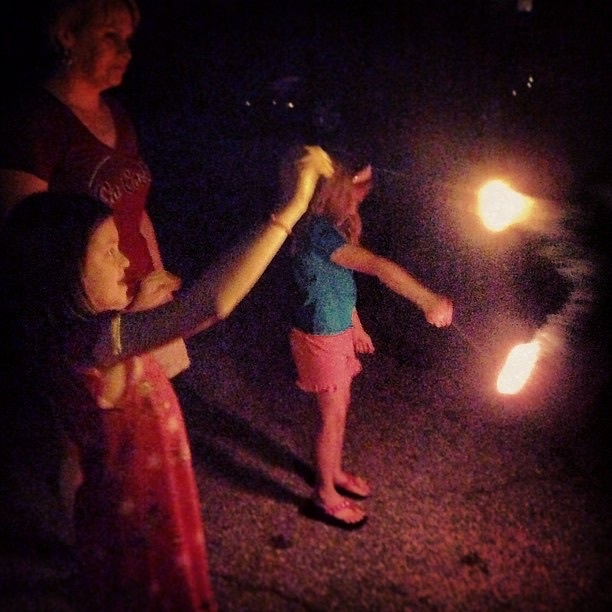 Sparklers with the girls.