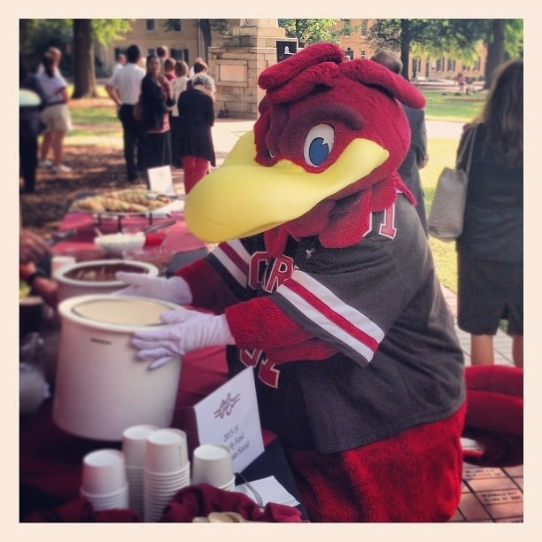Cocky stealing ice cream from at the Family Fund reception.