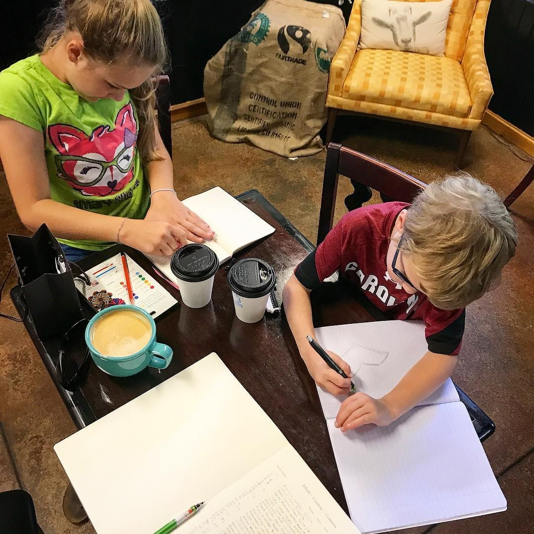 Jill and Ryan joined me at the coffee shop this morning to sketch with me on my birthday. What a great treat. (Don’t worry, they had hot chocolate .)