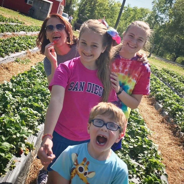 Team Wertz picks strawberries.